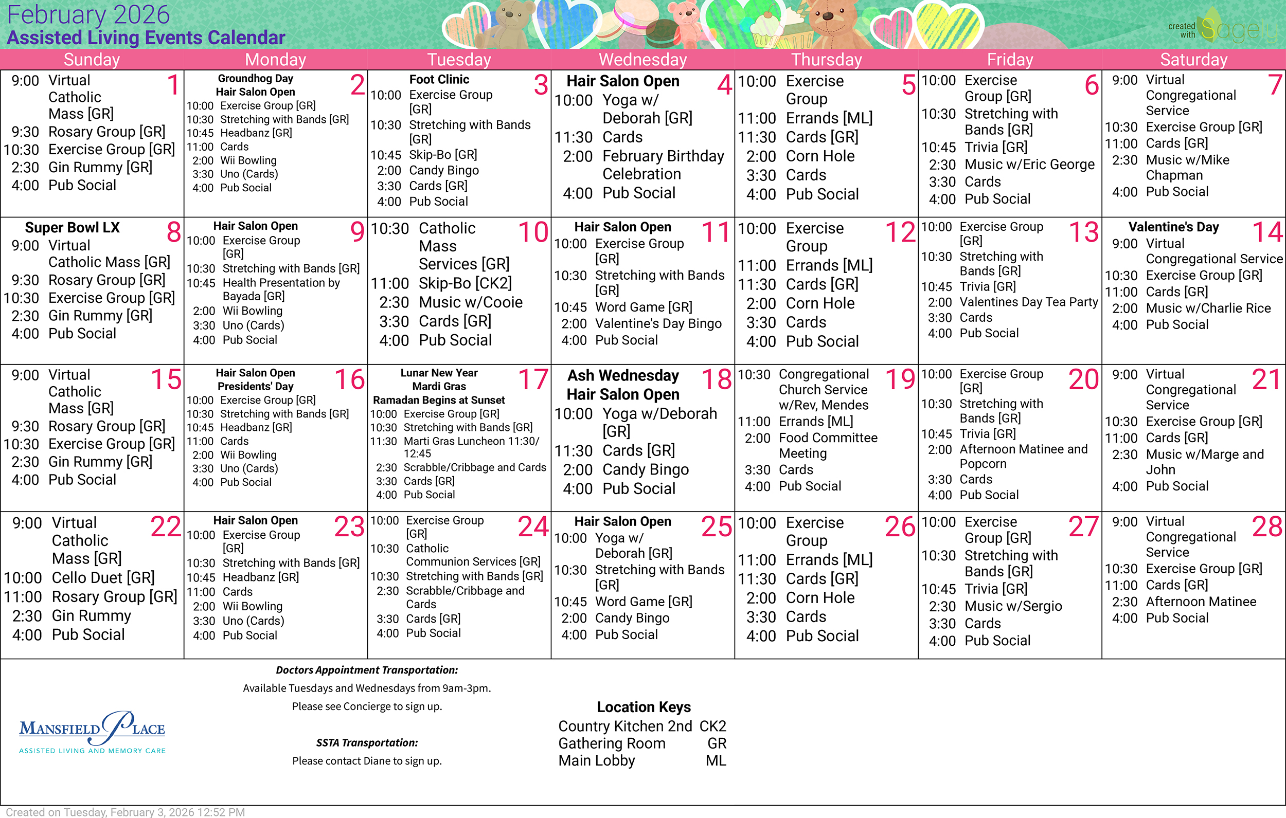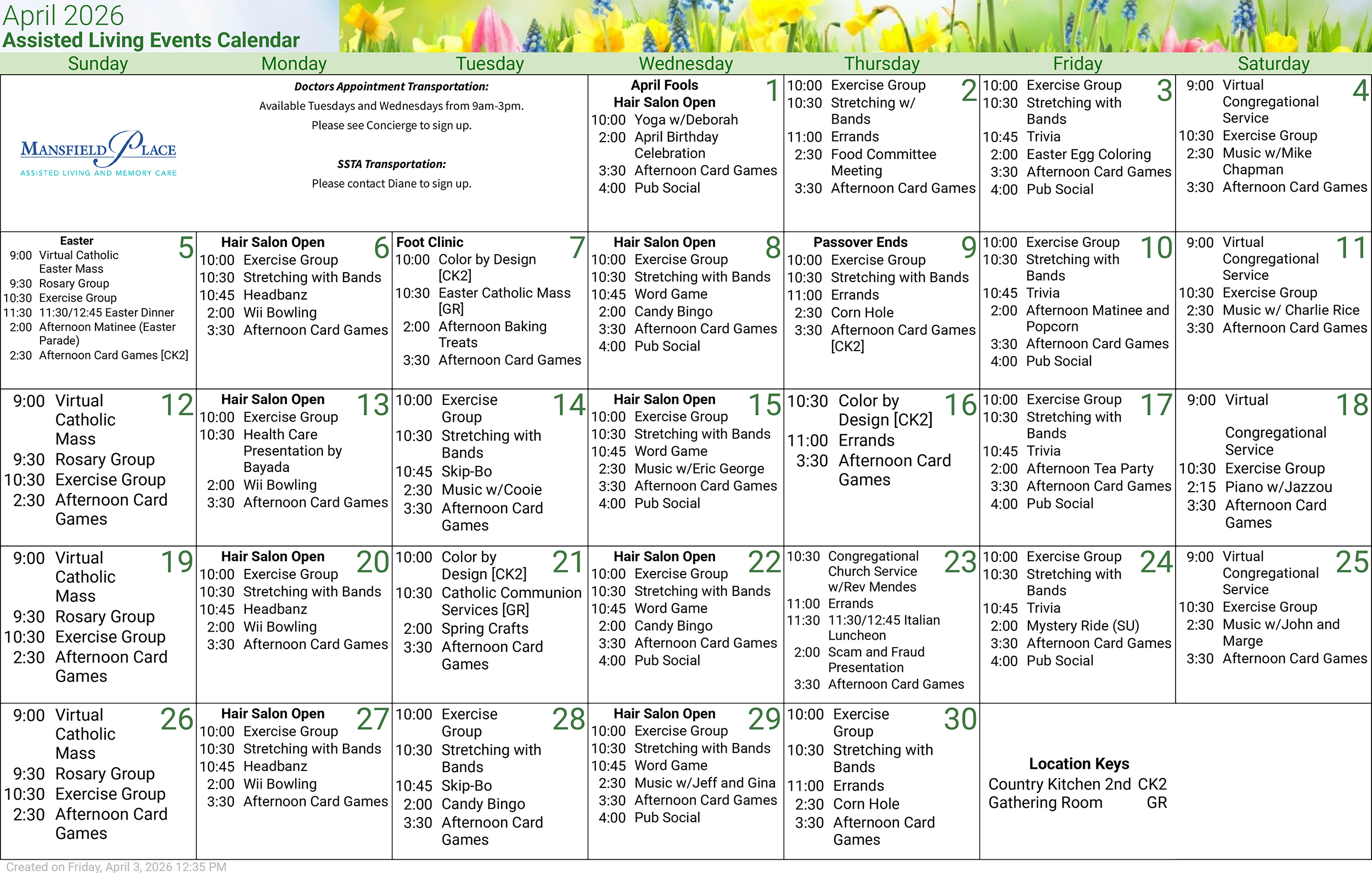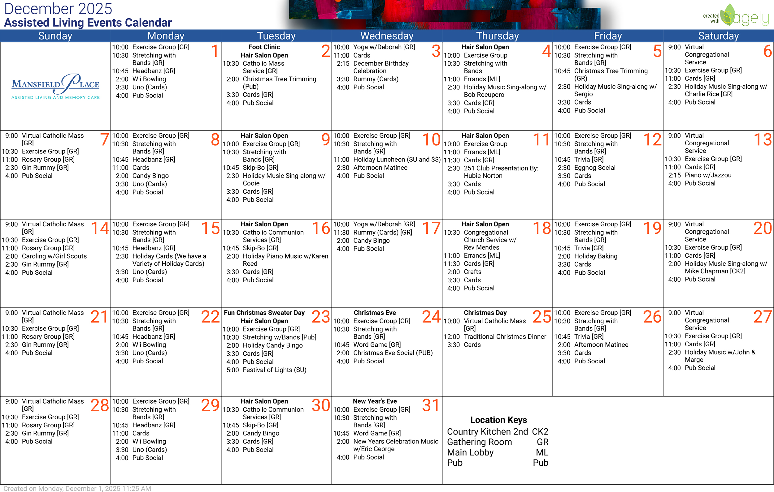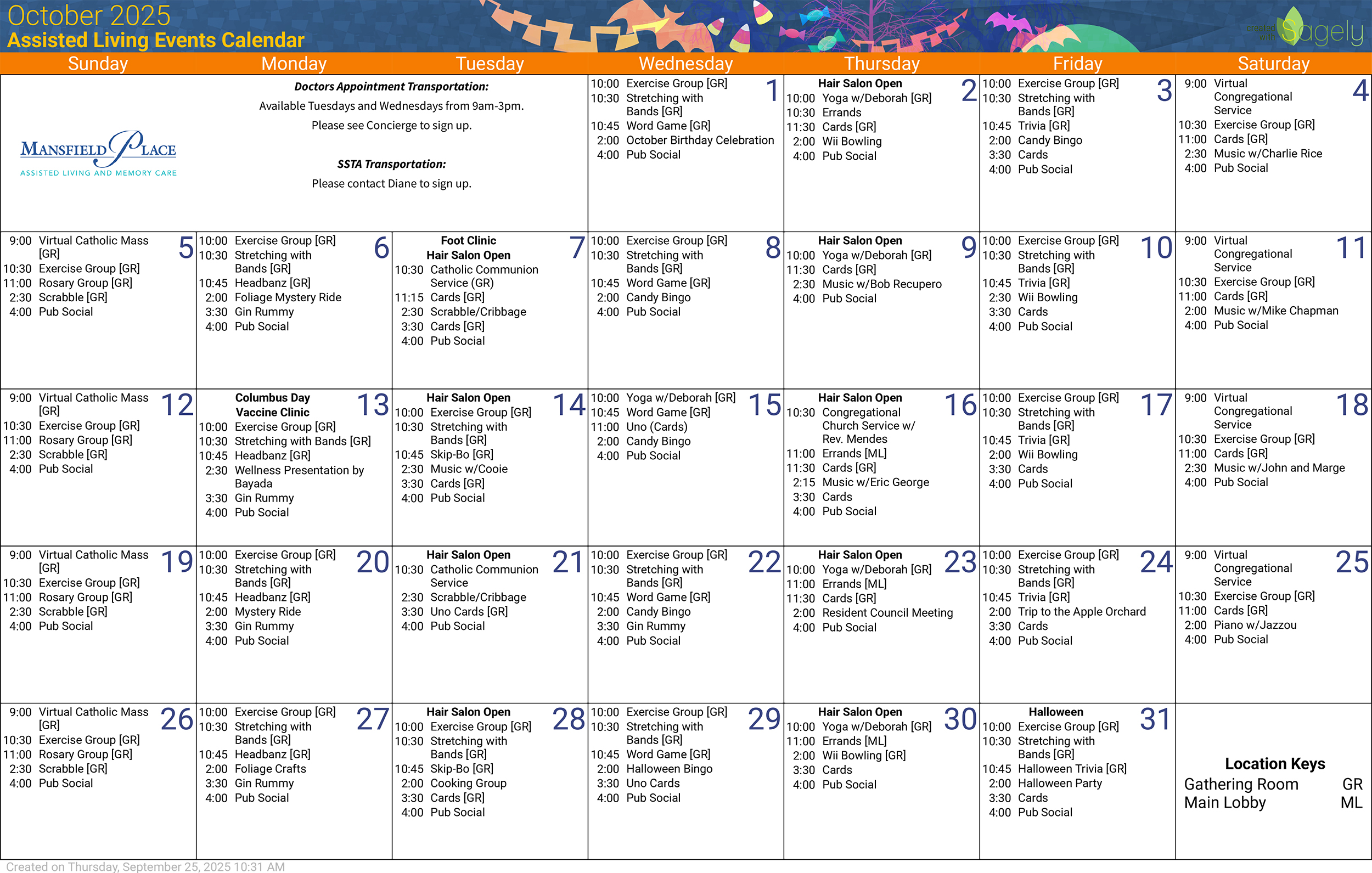 Monthly Events at Mansfield Place
